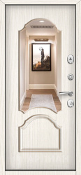 Если важна функциональность, обратите внимание на входная дверь с зеркалом: она визуально расширяет узкий коридор. Варианты, где дверь с двух сторон выполнена в разной отделке (например, снаружи бетон светлый, а внутри дерево под беленый дуб или лиственница), позволяют подстроить дизайн под подъезд и квартиру одновременно. Интересно смотрятся решения «зеркалом панорама» во весь рост, а также сочетания, где зеркалом белый матовый внутри поддерживает светлый интерьер.