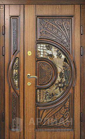 Входная дубовая дверь резная №61